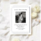 Design features clean and classic black and white design which makes it minimalist and elegant. It features a simple double-line border with round corner details that frame the layout. There is also a photo at the centre that the couple can personalised. The mix of script and serif fonts are like traditional calligraphy, but with a modern twist. A great choice for couples who love minimalist style with a hint of vintage charm.