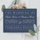 Formal Scrolling Leaves Navy Blue Wedding Invitation