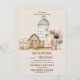 Featuring a picturesque design, this invitation showcases a tranquil farm scene with barns, fields, and cottages, all illustrated in exquisite detail. The soft, earthy tones and rustic elements create a warm and inviting look that reflects the serene ambiance of a countryside wedding. Printed on high-quality cardstock with professional attention to detail, this invitation promises a premium feel that will impress your guests.