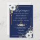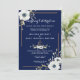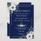 Nautical Boutique Co.'s formal nautical wedding invitation features traditional navy blue block lettering paired with modern script typography. The watercolor accents include an anchor, rope frame, and blue and white anemone flowers set on a rich navy blue background. This design combines traditional and modern design elements for your formal, upscale wedding. #Nautical #CoastalWedding #Anemone
