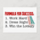 1. Work Hard 2. Dress Right 3. Win the Lottery Heck yeah, win the Lotto. Gimme 20 million for spending a buck. What a bargain. I'll take that cash and run like hell. Or I could simply sell t-shirts online. That's the secret to success. To heck with working for your dough, win it randomly, relying on fate. Riiiggghhhttt.