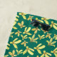 Hand-drawn illustration of yellow forsythia flowers on a green background as a seamless pattern.