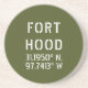Stone coaster features latitude and longitude map coordinates for Fort Hood army base near Killeen, Texas.
