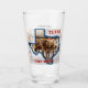 A pint glass that boldly shows the Fort Worth Cattle Drive, along with the Texas state outline. A unique Texas souvenir of a visit to Fort Worth.