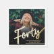 Forty black and shiny gold metallic affect script text photo napkins. Personalize this 40th birthday party script photo birthday napkin with your own birthday girls or boys name and party date, and a special photo. Other years and matching items are available. © Original design by Sarah Trett for www.mylittleeden.com on Zazzle.