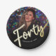 Forty gold affect script text photo party plates. Personalise this 40th birthday party script photo birthday plate with your own birthday girls name and a photo of your birthday girl. Other years and matching items are available. © Original design by Sarah Trett for www.mylittleeden.com on Zazzle.