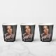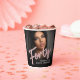 Forty bold glitter style effect script text in rose pink and sliver hues on black paper cups. Personalise these cups with two photos of your birthday girl turning 40, one on each side plus your own name or message. Ideal for your 40th birthday party guests. Other years and matching items are available. © Original design by Sarah Trett for www.mylittleeden.com on Zazzle.