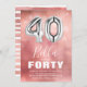 Forty Birthday Party Modern Pink Age Balloon Invitation