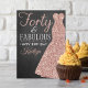 Send a personalised birthday greeting with this elegant rose gold glitter dress forty and fabulous 40th birthday card. The name on the front can easily be personalised for that special person and the message on inside of the card can be personalised too.