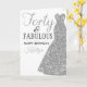 Send a personalised birthday greeting with this elegant silver glitter dress forty and fabulous 40th birthday card. The name on the front can easily be personalised for that special person and the message on inside of the card can be personalised too.