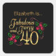 Forty and Fabulous Gold and black with Red Roses women's birthday square sticker envelope seal. Add the recipients name to make it personal.
