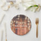 Rustic brown wood with string light design paper plates. Edit font and colour to customise it further.