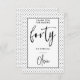 This modern, black and white, 40th birthday party thank you card features classy modern typography. The word "forty" appears in script style calligraphy. Perfect for sending gratitude to your guests without having to hand write so many personal notes. The colour scheme of the invite is easy to customise - both the background and the typography - so feel free to pick a bespoke two-colour scheme or stick with the classical, minimalist black and white. These thank you cards reverse to a stylish repeating triangle pattern but, should you prefer block colour, that too can be chosen inside the "Edit using Design Tool" option.