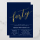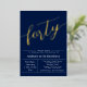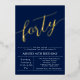 Forty | Modern Blue & Gold Script 40th Birthday Foil Invitation