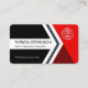 Overleaf, the dark red color is brought over front the front face of the card. Card details are over on the left with the global logo at the top followed by your prestigious name and the contact details.