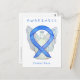 The blue ribbon colour is used to show awareness for Foster Care. Customise this awareness ribbon postcard with your own custom personalised message that supports Foster Care Awareness.
