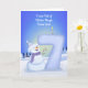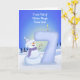 Bright winter joy fills this 7th birthday scene as a cheerful snowman shows off the tall snowy “7” sculpted just for your daughter’s big day. Soft, leaf-shaped trees frame the background, bringing a gentle seasonal touch to the artwork. The cool winter tones, playful textures, and warm expression create a sweet, memorable design perfect for foster son who adore snowy magic. A lovely choice for anyone searching for a whimsical winter 7th birthday card for a special boy.