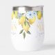 Found Her Main Squeeze Personalised Lemon & Flower Thermal Wine Tumbler for the Bride to Be! Featuring beautiful elegant dusty slate blue watercolor flowers and sweet yellow lemons.