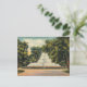 Vintage postcard illustrated by the Tichnor Brothers in the 1930s-40s, of the Fountain in Forsyth Park in Savannah, GA. Bordering the beautiful fountain are full magnolia trees and palm trees. It is a beautiful hotspot for weddings, concerts, and fun family activities.