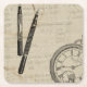 Fountain Pens and Watchface with Notes Square Paper Coaster