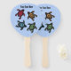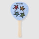 This program hand fan is blue with four abstract black turtles with colourful markings on their shells in red, yellow, blue and green. Customise your text on the front and back with the template.