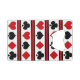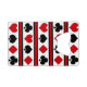 Set of card suit icons isolated on black, red and white striped background