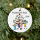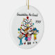 A pretty round ceramic keepsake Christmas holiday ornament features two stick figure boys, a toddler boy, and a baby girl in a pink carriage in front of the holiday tree! Text reads "Grandchildren Are Grand!" but you can change it to your family name or other text message. It can also easily be dated with the current year!