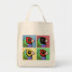 The printing came out very well, better than I had anticipated. The natural color fabric is sturdy with strong seams and comfortable handles. This tote fits easily over my shoulder. As it is filled, the bottom flattens out--very cool! I would buy this product again. This grocery tote holds a lot of groceries! The image quality was very good. The colors were a little darker than I had expected. The darkness may have been due to printing on a natural color fabric rather than on white. The cat design is attractively centered on the tote. The spirit of the design is very lively, just as it appears on the Zazzle website.