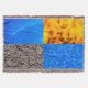 A quality printed throw has its advantages. This is a much finer weave throw than its loopier cousins, and though lighter, it is worth the investment for custom room accessorizing. The back is much prettier than the typical brown, and the fringe on the long sides very vivid, the selvage nicely done. Before photographing, I washed the throw in cold water, delicate, with a thicker woven throw the same size. On tumble dry low, this throw was dry in half the time as the other. This is a very practical quality if you use throws for furniture covers or to wrap up in frequently. The sleekness of the fabric makes it a great layer for accenting or protecting without the feeling of sitting on too much stuff. Perfect for napping or when you feel a light chill coming on. The color printing is beautiful and on this fabric, matched the design and color of my Photoshop image. This is an advantage for blending room fabrics and colors. The fringe on the short sides prints the colors from the design image and therefore varies from the side fringe. I streaked a white fractal line through the plaid pattern to give the illusion of weaving. This printed as crisp as an illusory thread, and put some white in the short side fringe, showing another advantage of print vs loomed- for artistic purposes, line lines, detail, and color integrity can be planned and preserved. My loomed throws have color limitations and more of a needlepoint texture. Print throws reproduce an exact image. The throw felt a little stiff straight out of the package, but this went away in the first delicate wash. Of course I searched the wash water for ink or bleeding and there was none.
