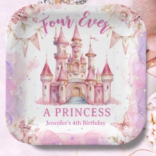 Four Ever A Princess Pink Castle Girl 4th Birthday Paper Plate