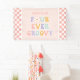 Four Ever Groovy! Retro chequered print with Daisies Birthday party banner in pink.
