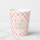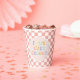 Four Ever Groovy! Retro chequered print with Daisies Birthday party cups in pink.