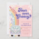 Four Ever Groovy Retro Rainbow 4th Birthday Invitation