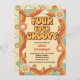 Four Ever Groovy Retro Rainbow 4th Birthday Invitation