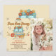 Four Ever Groovy Retro Rainbow 4th Birthday Photo Invitation