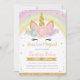 Celebrate her fourth birthday with this enchanting Four Ever Magical Unicorn invitation! Featuring a whimsical unicorn, vibrant rainbows, and sparkling gold accents, this design sets a dreamlike tone for a special 4th birthday party. Easily customise the text to include your event details for a professional, high-quality look. Perfect for little girls who love magic, fantasy, and all things sparkly!