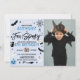 These fun and stylish invitations are perfect for anyone celebrating a 4th birthday this Halloween. The design features everything spooky from a black cat with flying bats to a spider's cobweb, ghosts, a witches broomstick, skull & bone, magic glass ball and a jack-o-lantern pumpkin all in black, white and shades of blue colours. The template photo and wording is easy to personalise and your party guests will be in for a scare when they receive these invites in the mail!