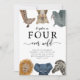 Cute and fun boy's safari animals theme 4th birthday party invitation featuring illustration of safari animals of giraffe, snow leopard, rhino, lion, elephant, and zebra. The text says "XX is FOUR ever wild."
