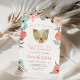 Adorable invitations for your wild one's fourth birthday feature a boho floral border and a sweet rosy cheeked cat adorned with flowers. "Four-ever wild" appears in peach lettering, with your birthday party details beneath.