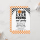 Celebrate your little one turning four with this "Four Ever Young" Retro Halloween 4th Birthday Party Invitation! Designed with a fun and funky vibe, this editable invitation features bold orange and black chequerboard patterns, along with groovy smiley face jack-o'-lanterns with lightning bolt eyes – perfect for a festive and playful Halloween-themed 4th birthday.
