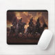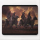 Four Napoleonic-era French Cuirassiers canter across a field with sabres drawn.