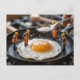 Tiny construction workers fix an egg in a frying pan funny surreal AI generated art