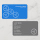 A business/profile card template with a stylish four gear wheel motif on the front. Company name and business type on the front top right. Name and all other contact on the reverse with a single gear motif in the bottom right. Ready to be customised with your details, suitable for many types of business.