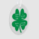 The front of this best friend ornament has a four leaf clover against a white background and the saying: A good friend is like a four leaf clover - hard to find and lucky to have. The back of the ornament is green - you can Edit Design to add your name and your friend's name.