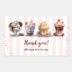 Celebrate the sweet birthday kid with a make-your-own sundae party. Four loaded ice cream sundaes are featured on this sticker featuring a light striped background reminiscent of a sweet shoppe. Use as envelope seals or on favours for a make-your-own sundae ice cream birthday party, ice cream social, or fundraiser. Available with matching products.