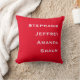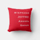 This simple, minimalist square throw pillow, with room for four names, is a wonderful gift for a new home or housewarming party - or for yourself, of course! Great gift for new parents or grandparents. It is bright christmas red and white, but easy to change colours. Back is solid red. All Rights Reserved © 2024 Alan & Marcia Socolik