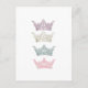 Four pastel coloured crowns lined up vertically - one pink, one green, one purple, and one off white. Background is white.
