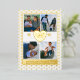 Four Photo Family Name Gold Red Hearts Fathers Day Foil Holiday Card. Personalise the text. Room for four lines for the heart. Change Father's Day for a Birthday or any occasion. Gold hearts on the front and red hearts on the back. The family photos are examples, change them for your own when you personalise them. If there is a yellow warning symbol, it means your photo is too small. Either add a larger photo or edit it to make the area smaller. The script style font and the colours can be changed when you customise further. Contact Sandy at admin@giftsyoutreasure.com