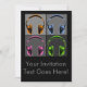 Four Pop Art Headphones, each pair of headphones is displayed within a square, each a different shade of grey. The headphones are in retro shades of orange, blue, pink and green with black shadows defining the shapes and contours of the headphones. The Four Pop Art Headphones design has a retro, old-school look and is ideal for those who love music, who prefer to listen to their music without interference from the outside world and DJ's who love spinning their vinyl. Visit the ElectricPopSpot shop and browse all our awesome music themed pop art designs! ElectricPopSpot - Transforming Pop Culture into Pop Art!