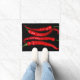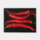 Four Red Chilies - Four horizontal red cayenne chilli peppers photographed on a simple black background.